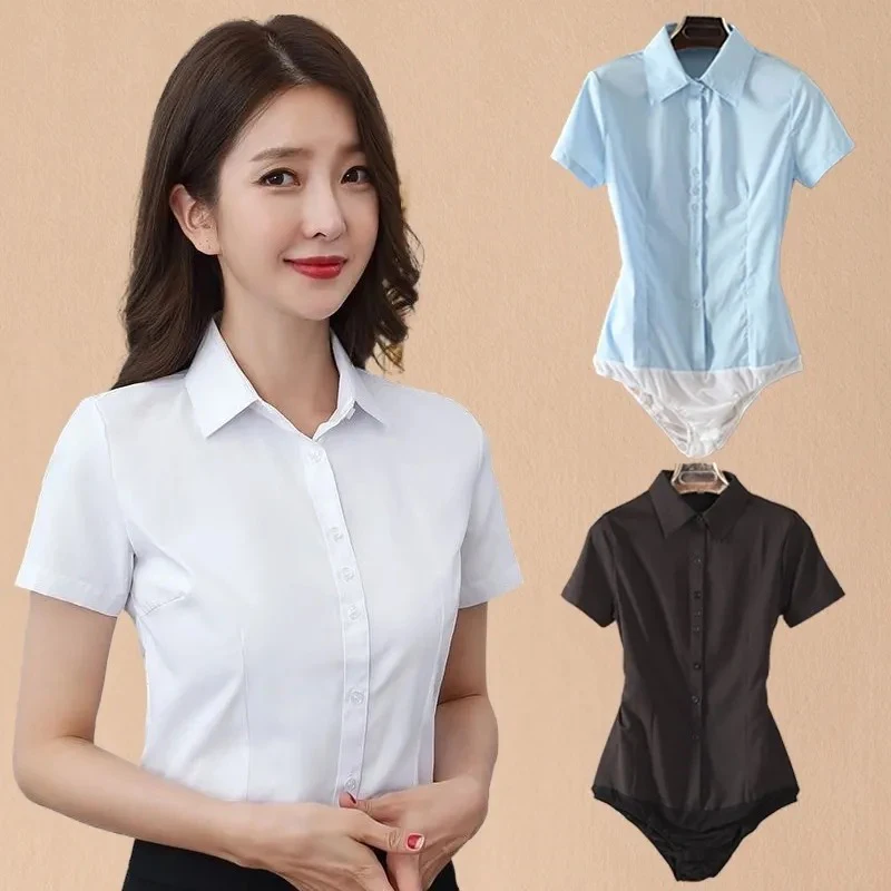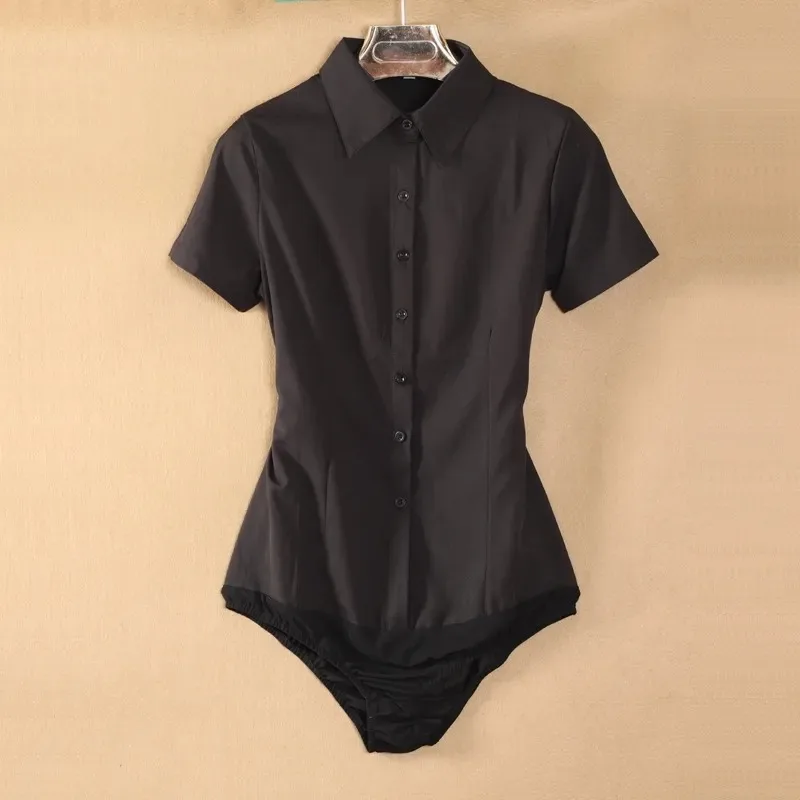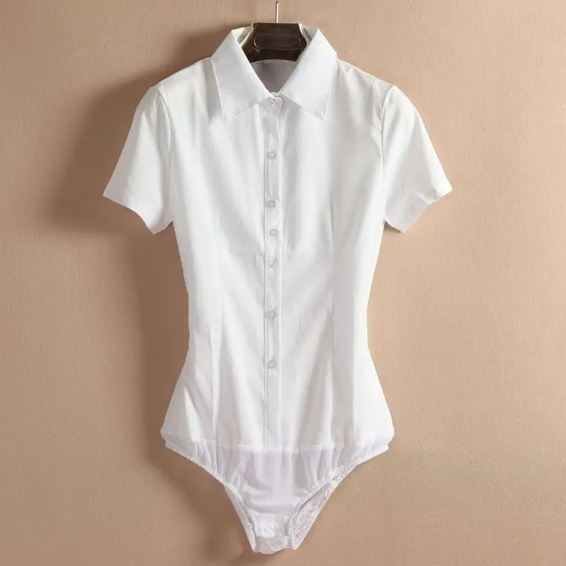 Elegant Fashion Short Sleeve Bodysuit Women White Color Tops And Blouses Office Lady BodyShirt Summer Jumpsuit Rompers 5XL